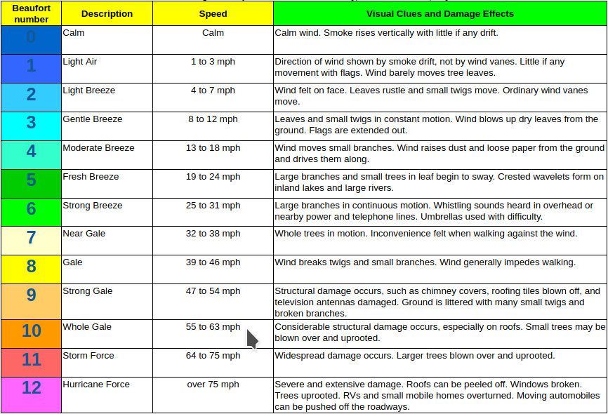Beaufort Wind Scale, credit NWS Portland, OR